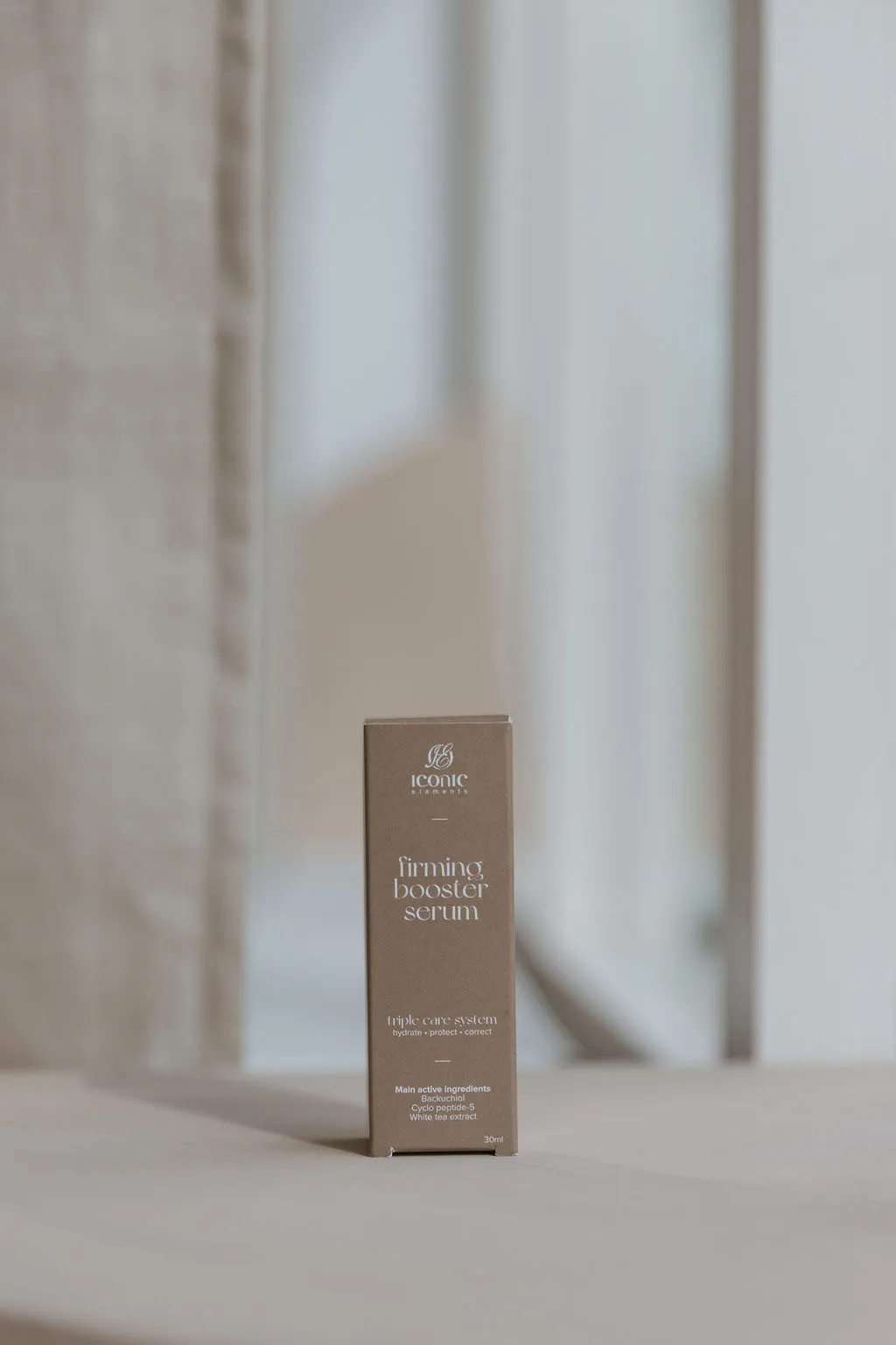 De Iconic Elements Firming Booster Serum is een serum met een strenge selectie van ingrediënten die ontwikkeld is door een dermatoloog. Dit serum bevat daardoor een unieke samenstelling van ingrediënten die ons huidverouderingsproces vertragen en zelfs tegen gaan. Het serum bevat een effectief alternatief van retinol en zit boordevol antioxidanten die onze huid langer mooi houden.