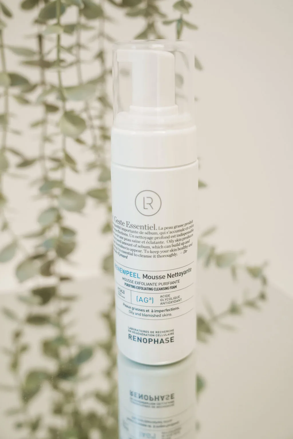 Een vette en acne gevoelige huid produceert vaak te veel talg, wat gaat ophopen en onzuiverheden veroorzaakt. Een goede reiniging met de juiste ingrediënten is daarom belangrijk om de talgproductie weer ‘normaal’ te krijgen. De Renewpeel Mousse Nettoyant verwijderd dode huidcellen op een zachte manier waardoor de talgproductie herstelt en de huid diep gereinigd wordt. Je huid zal glad, zacht en schoon aanvoelen.