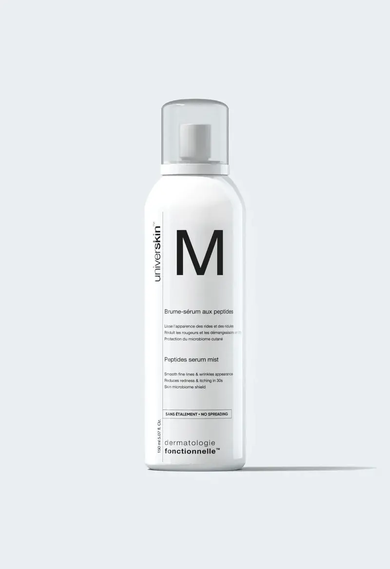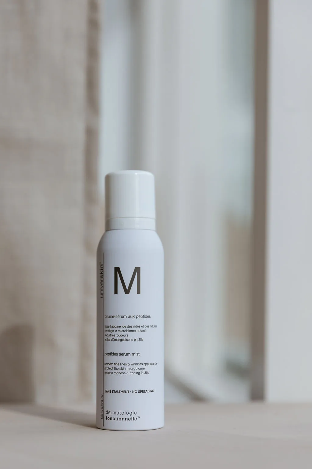 Universkin M is een vernevelend serum in sprayvorm dat verzacht, verfrist, beschermt en het evenwicht van de huid herstelt.